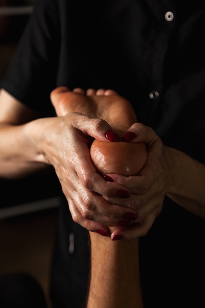 A revitalizing therapy that targets reflex points in the feet to release fatigue and restore energy flow throughout the body. The technique combines precise pressure with relaxation movements for the ankles and sole muscles, stimulating peripheral circulation and helping to eliminate the feeling of heavy legs after a long day.